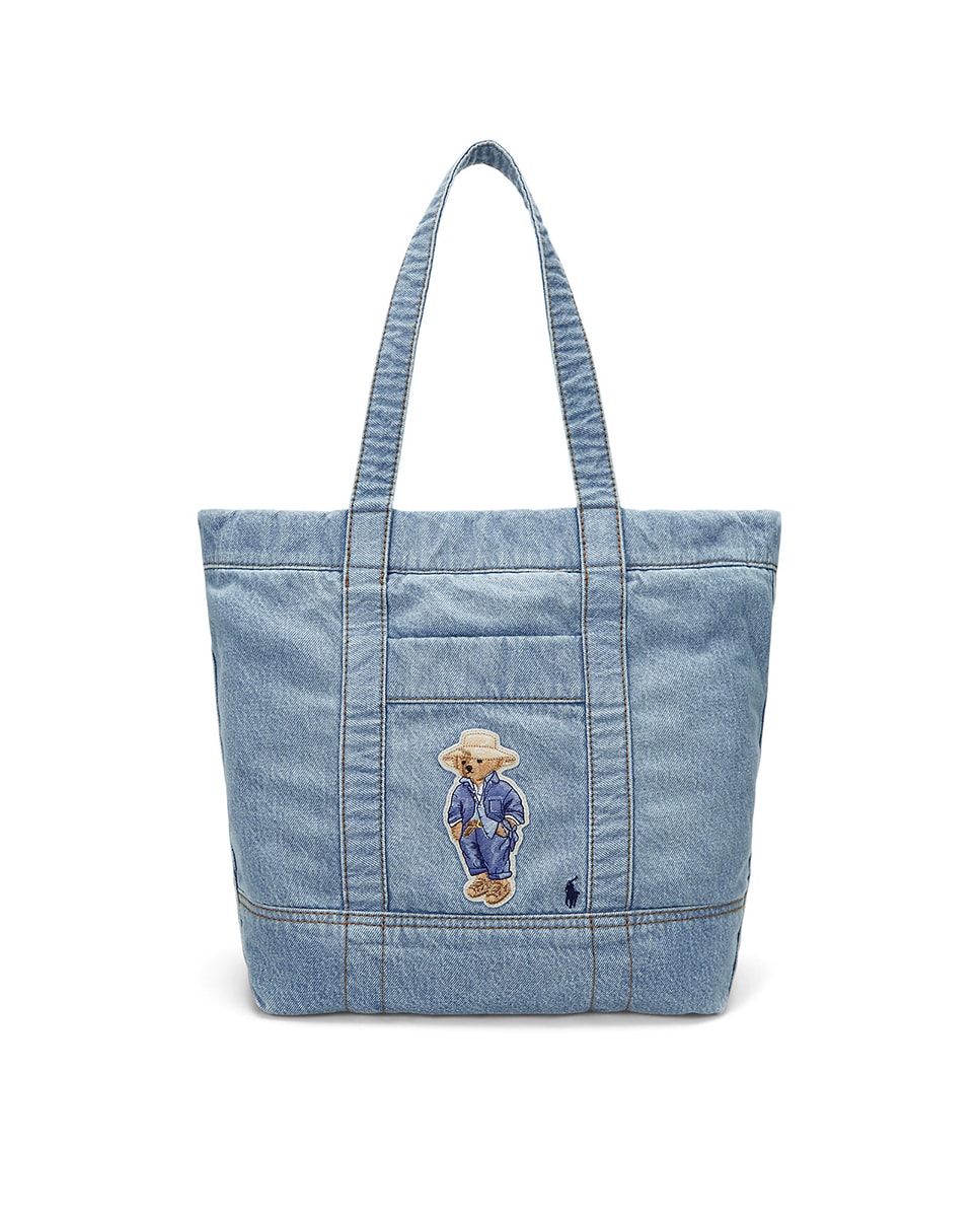 Bolso de hombro Tote de algodón denim con Polo Bear