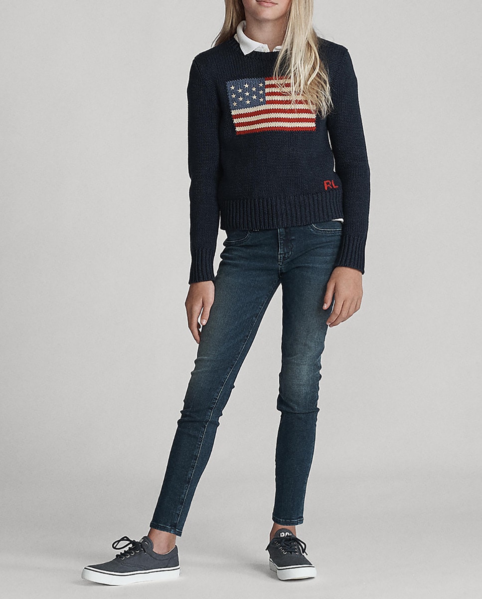 Pantalón vaquero de niña elástico y corte estrecho