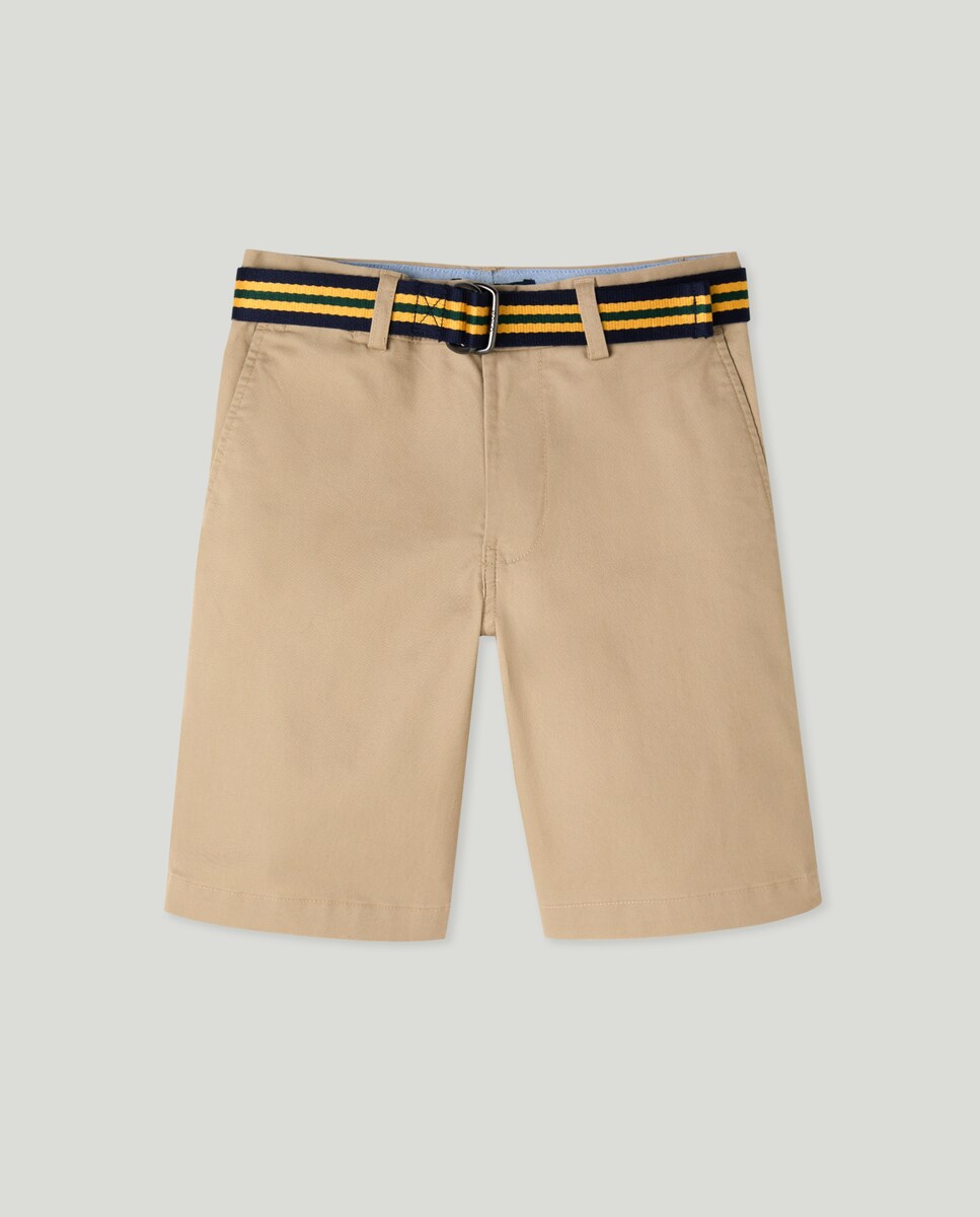 Bermuda de niño de algodón en kaki con cinturón
