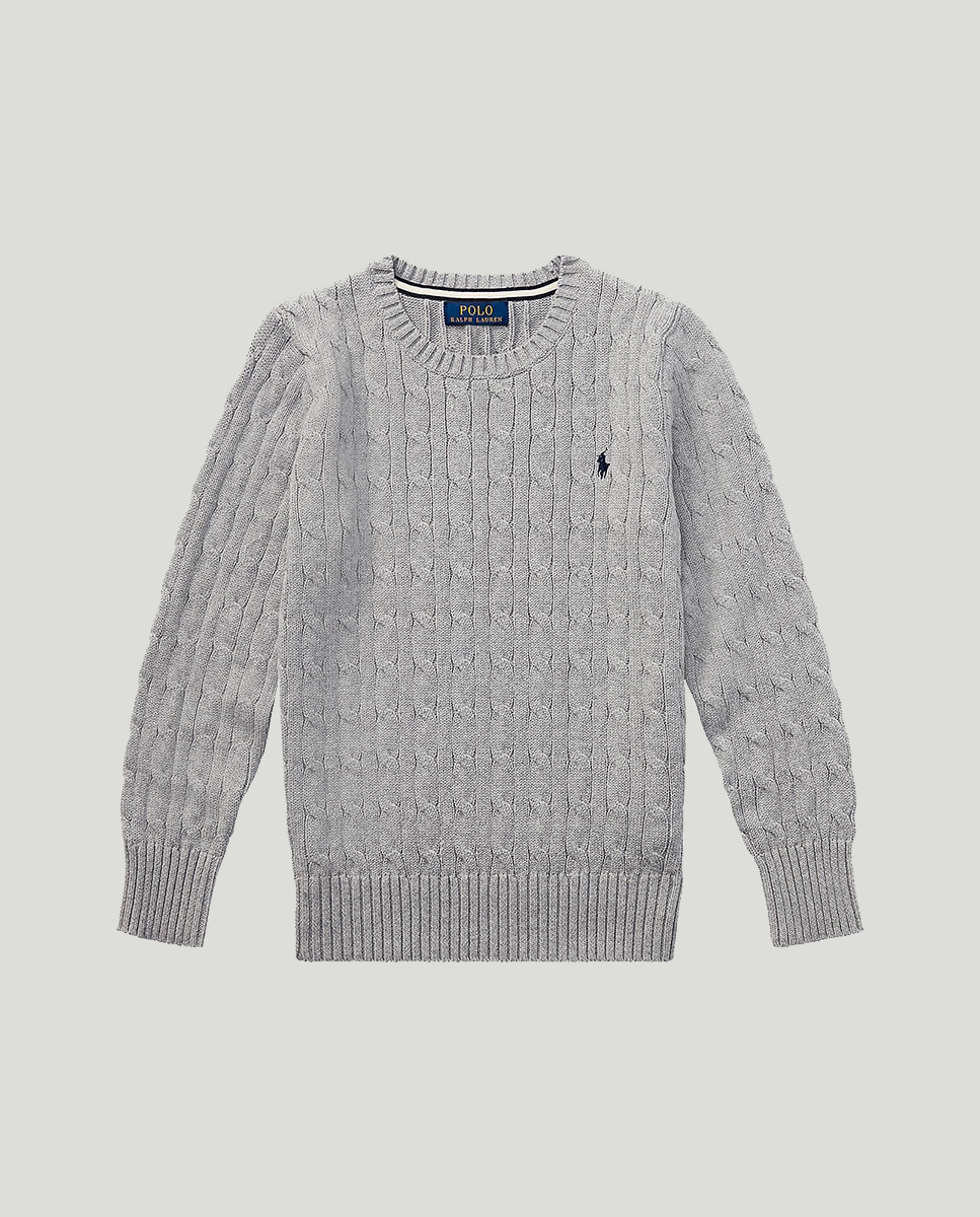 Jersey de niño en punto de ochos de algodón en gris claro