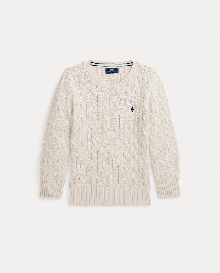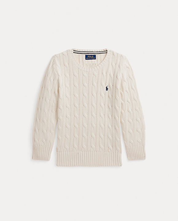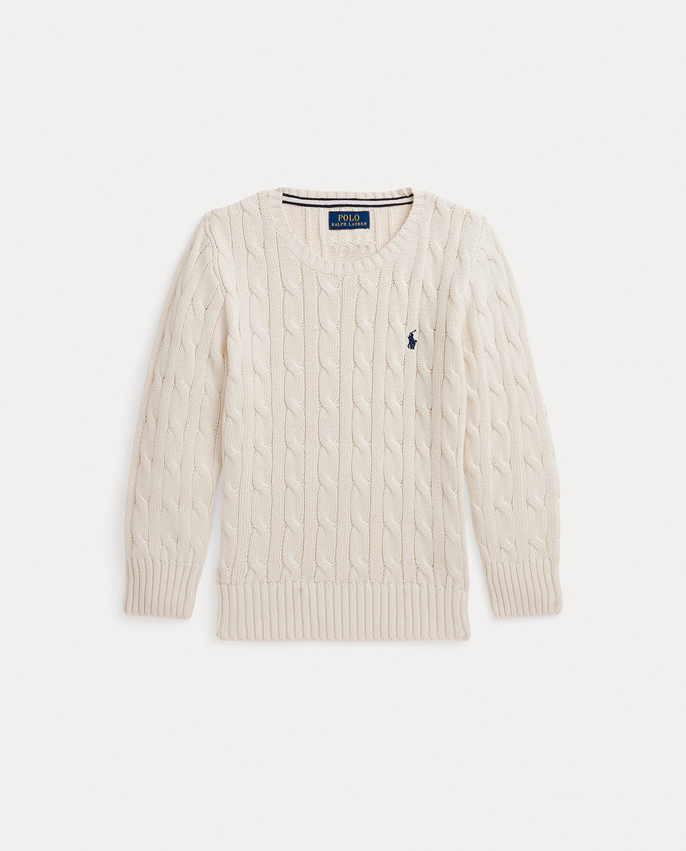 Jersey de niño en punto de ochos de algodón en crema