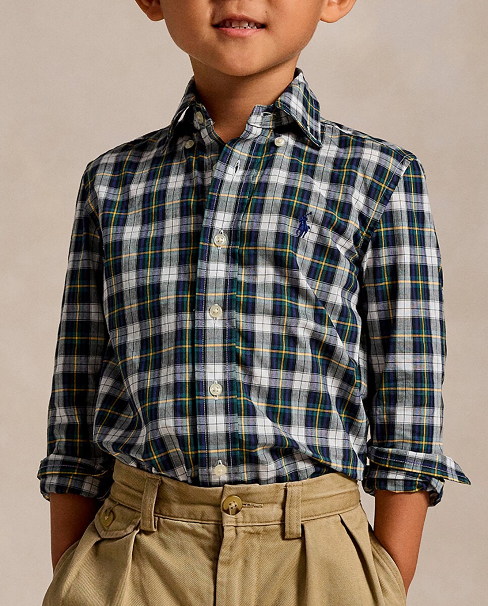 Camisa de niño de algodón de cuadros