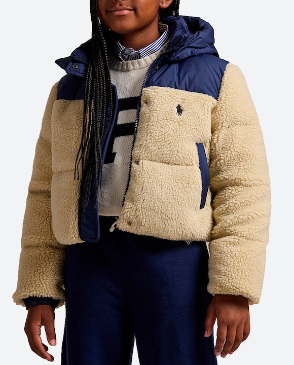 Plumífero de niña con borreguillo exterior y capucha