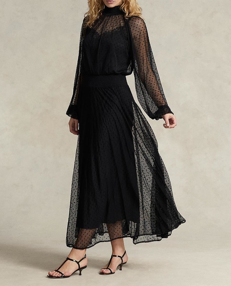 Vestido de cóctel de lunares de manga larga