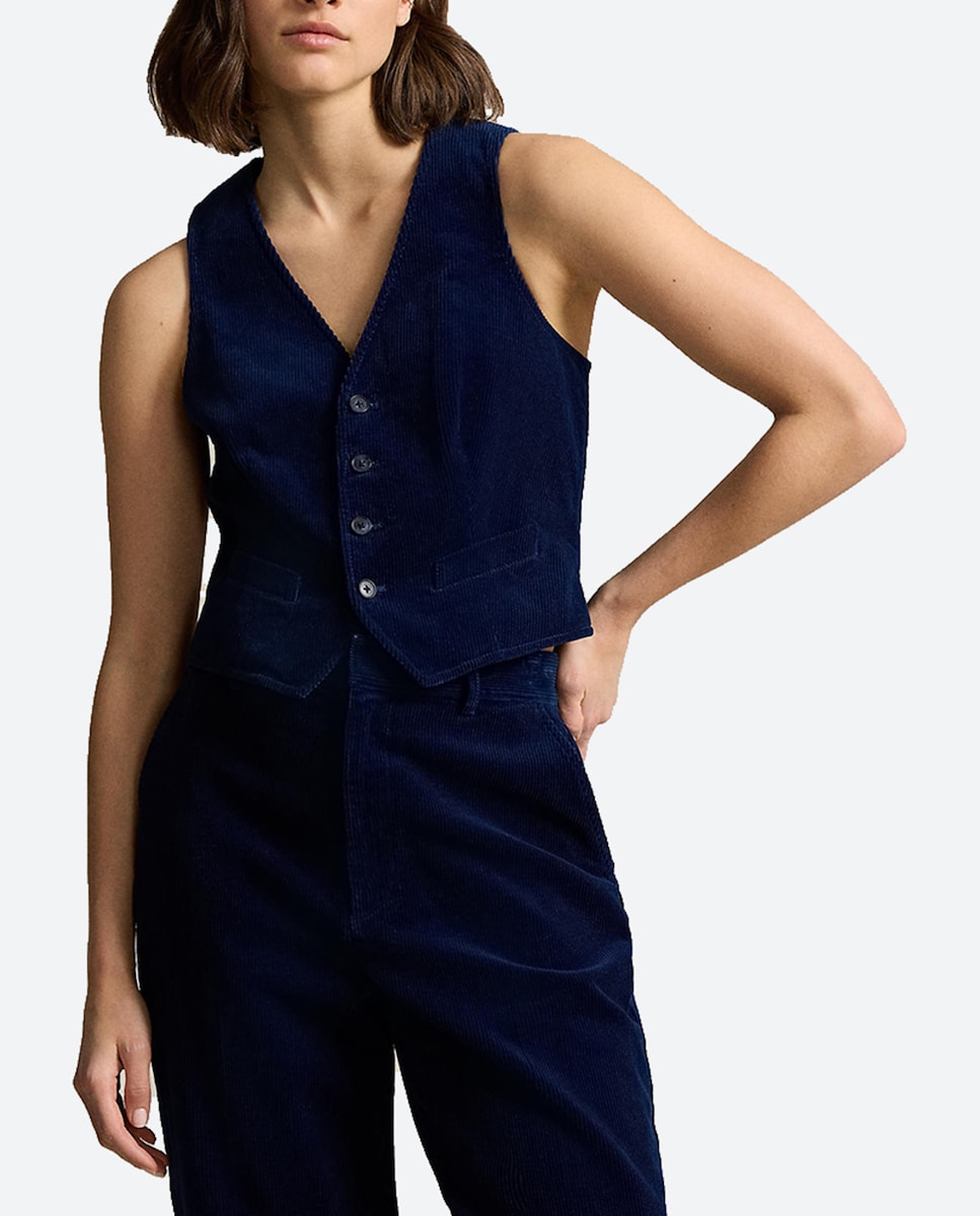 Chaleco de mujer de algodón con cuello pico y botones