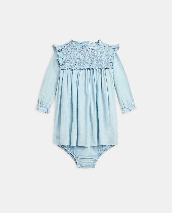 Vestido de bebé niña de algodón con canesú fruncido