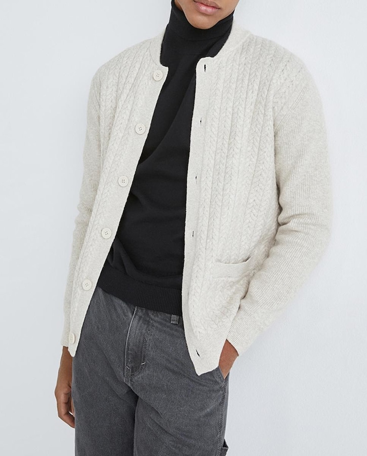 Cárdigan de hombre regular fit mezcla de puntos con lana