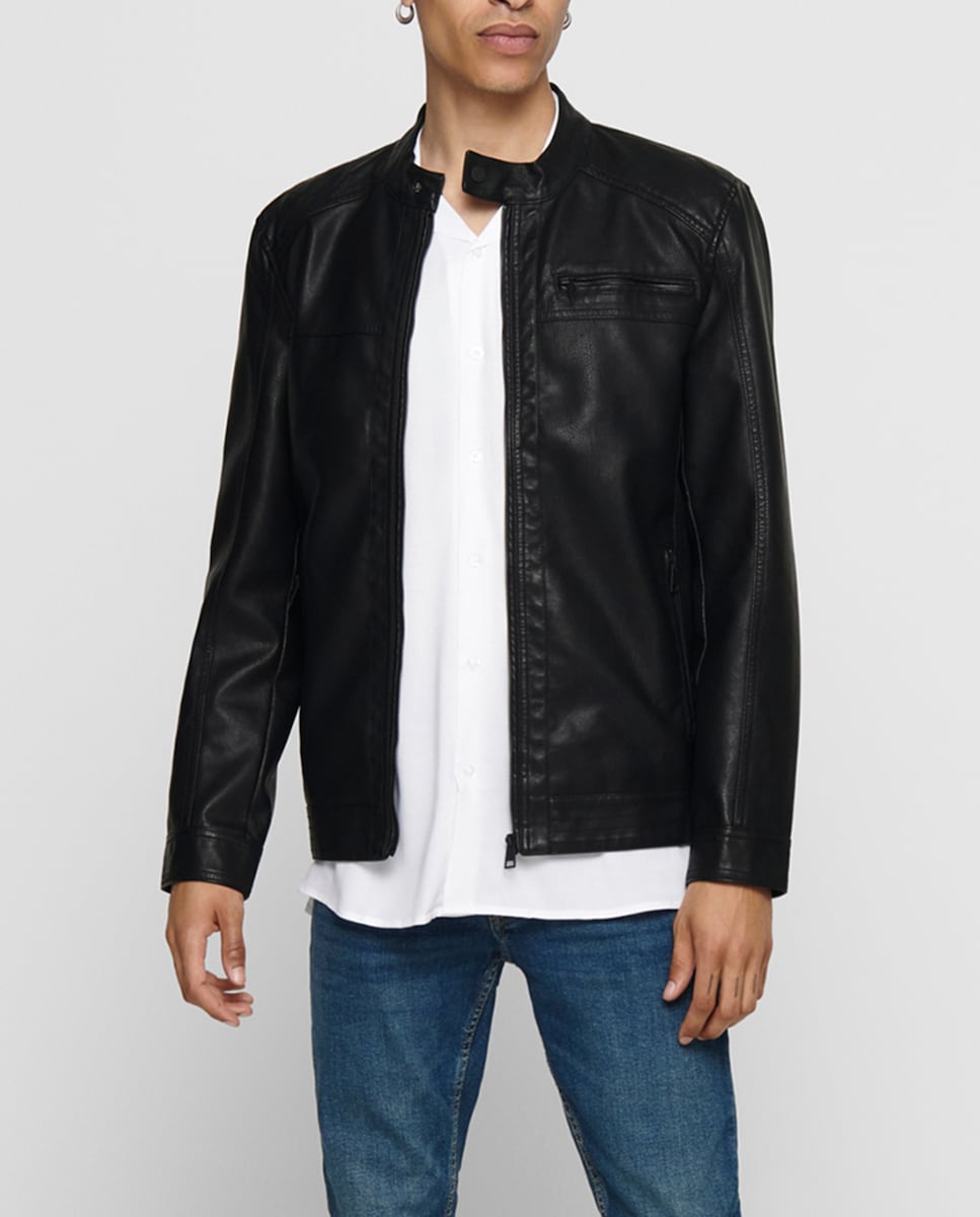 Cazadora biker de hombre efecto piel