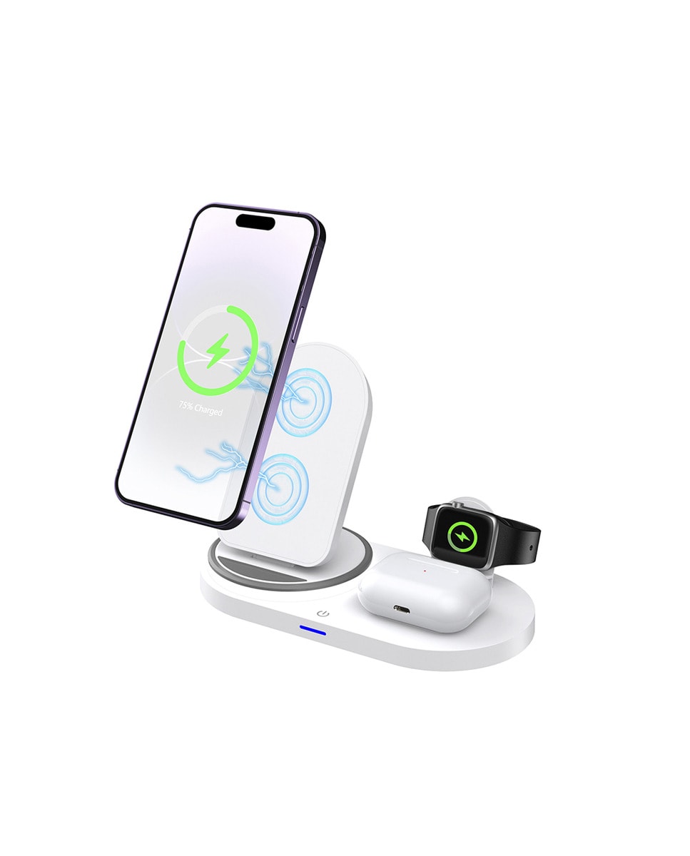 Base de carga inalámbrica plegable 3 en 1. Base Qi 15W doble posición,cargador Apple Watch, base Qi