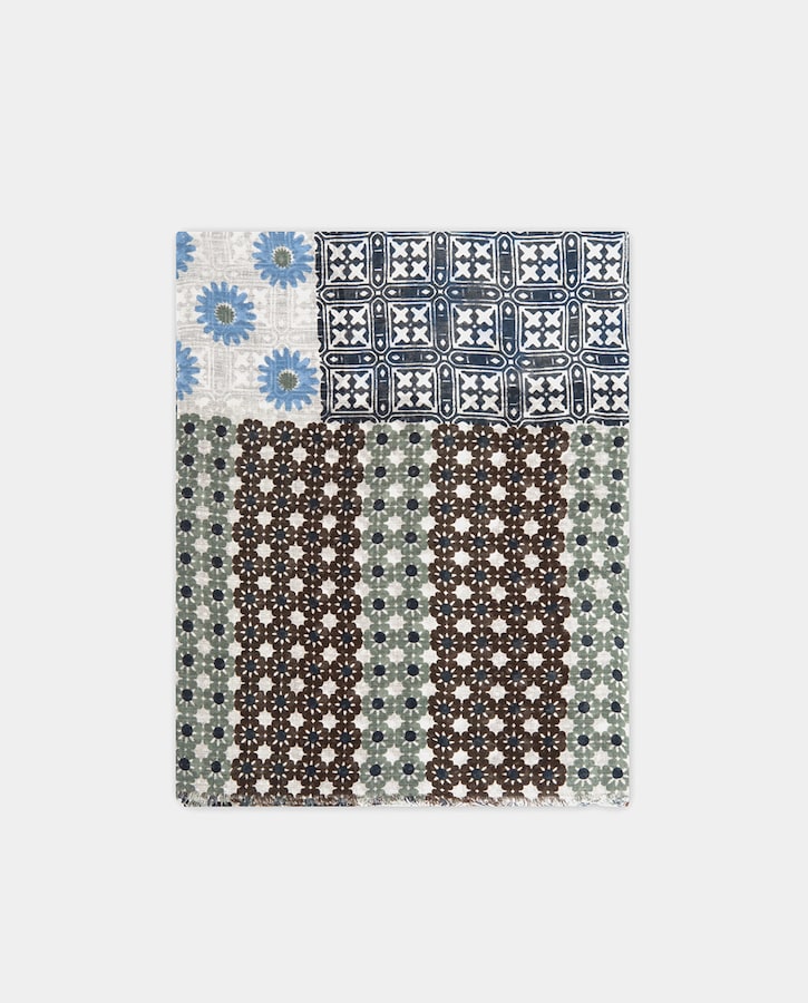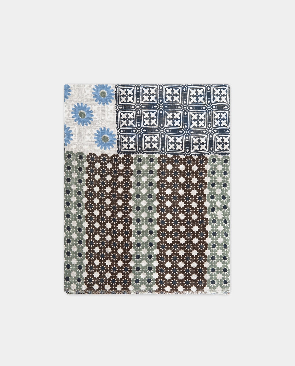 Fular de hombre patchwork marrones, verdes y azules