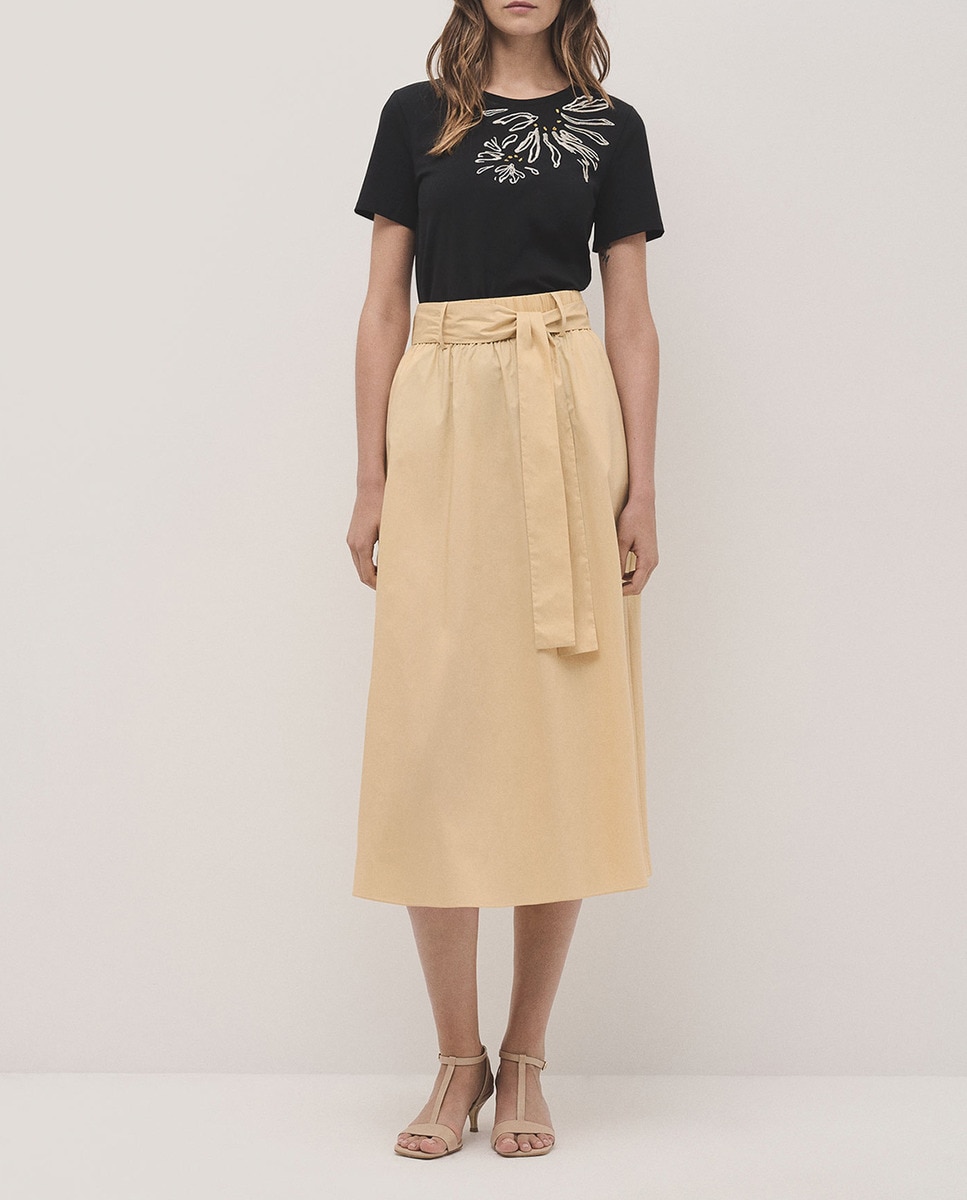 Falda midi fruncida algodón