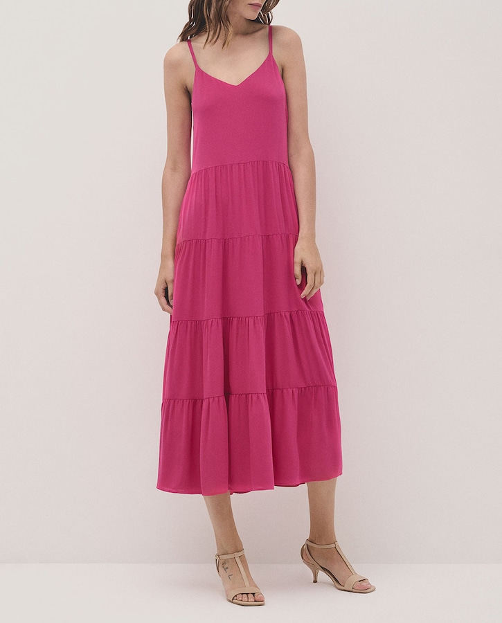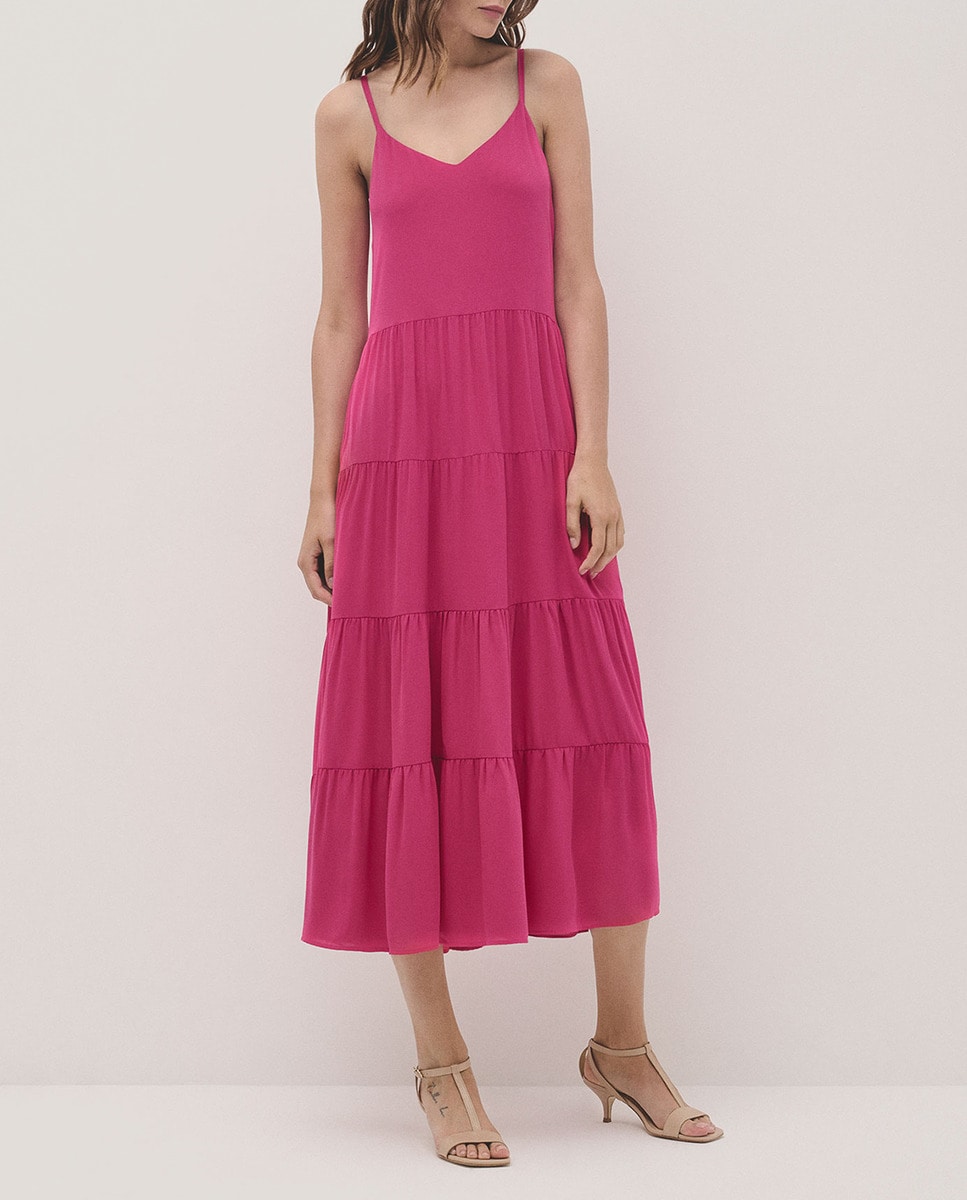 Vestido tirantes midi crepé ligero