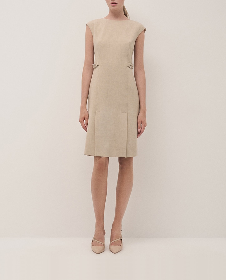 Vestido doble crepé con volante en delantero
