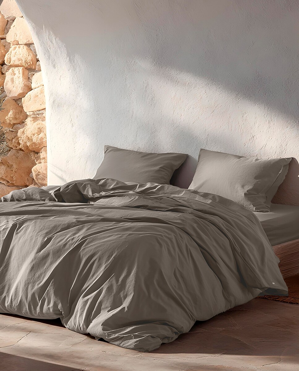 Juego funda nórdica 100% algodón lisa gris oscuro