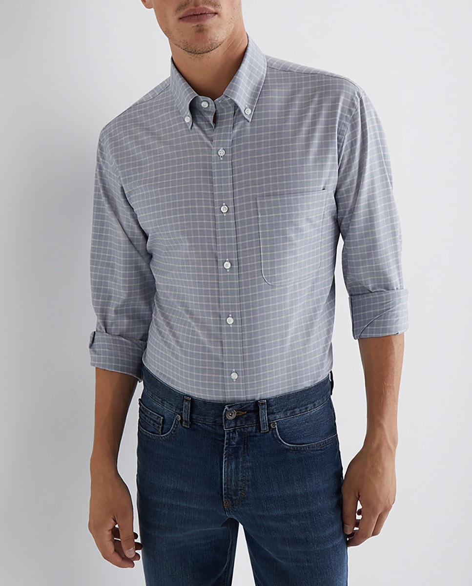 Camisa de sarga sport fácil plancha de hombre en algodón BCI classic de cuadros azul