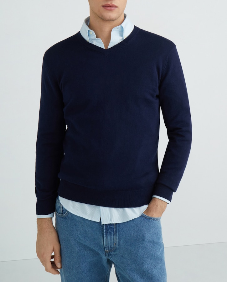 Jersey de algodón de cuello pico de hombre.