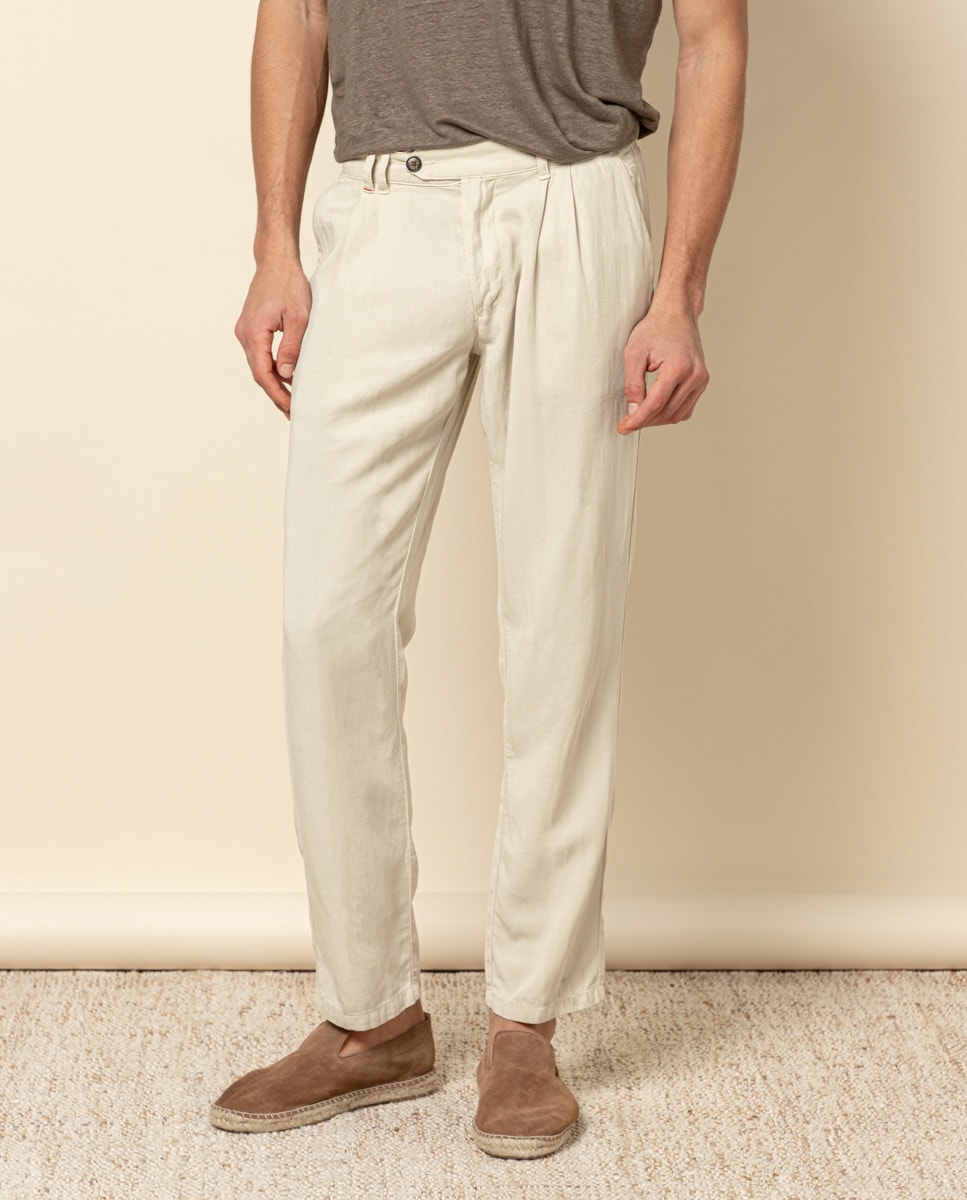 Pantalon doble pinza beige cla