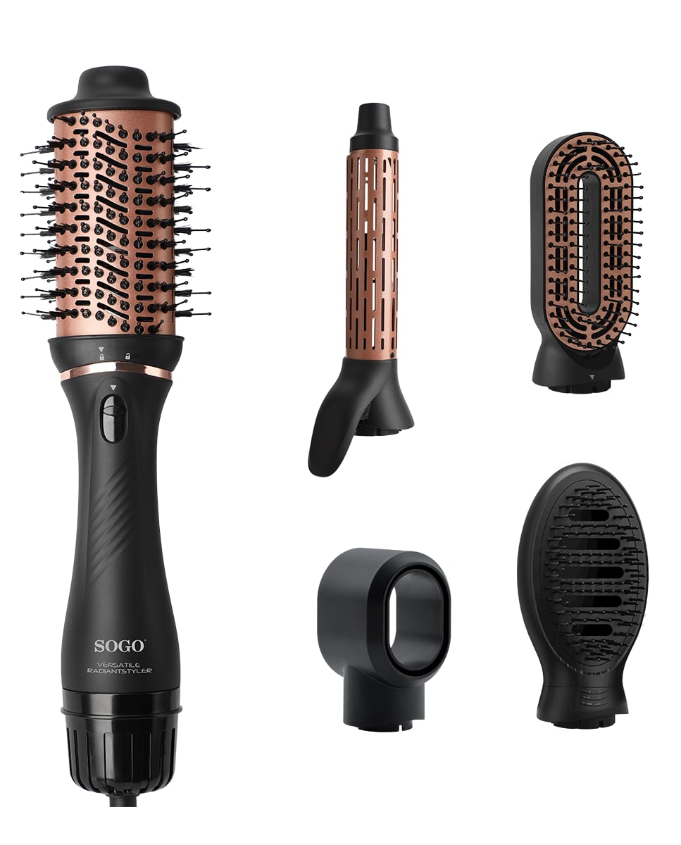 5 en 1 Juego de Estilizador con Motor de 3000rpm y Doble Cierre de Seguridad para Usarlo como Plancha, Rizador y Secador - 1200w