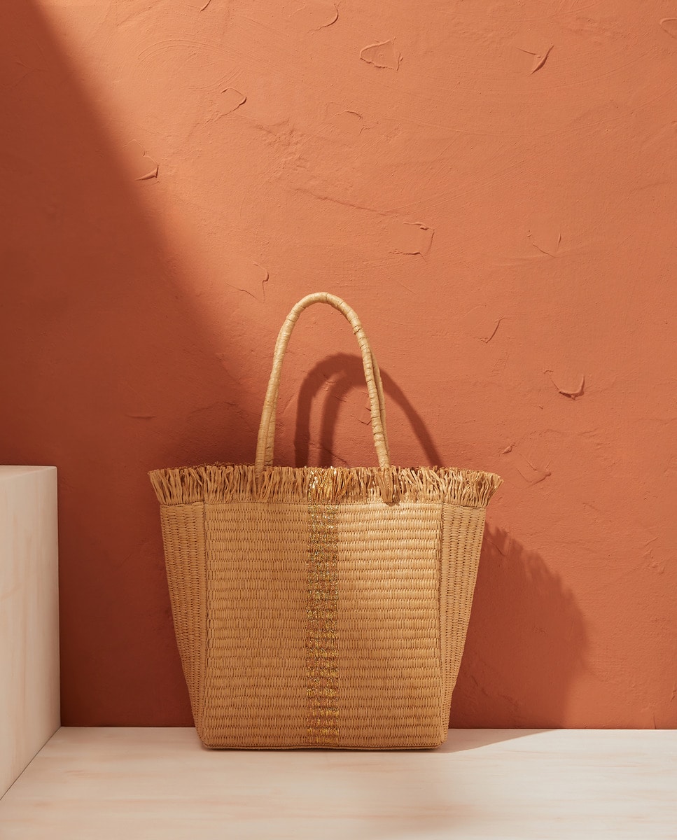 Bolso rafia raya central flecos