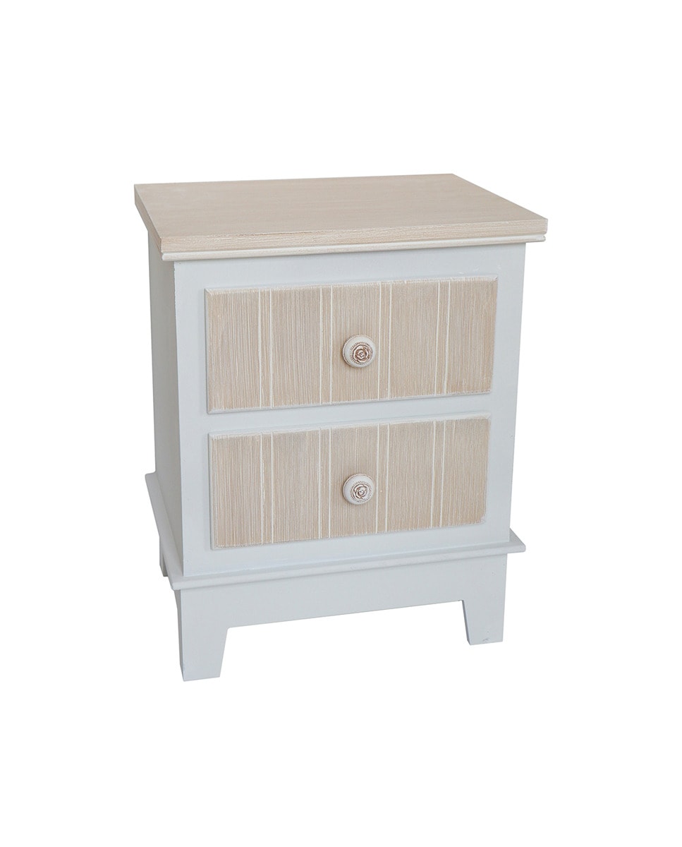 Mesita de madera de 2 cajones blanco
