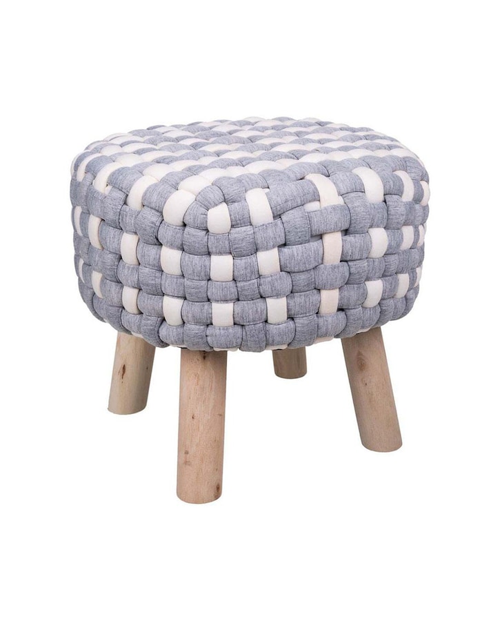 Taburete de madera y algodón trenzado