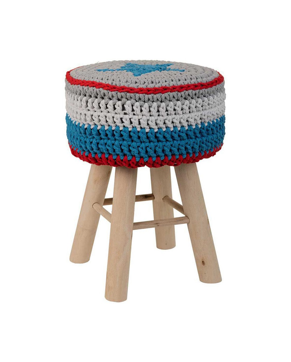 Taburete de madera y algodón trenzado azul