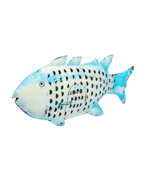 Pez portavela de metal envejecido azul