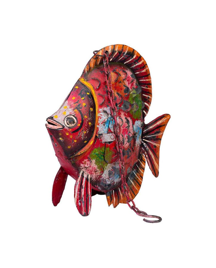 Pez portavela de metal envejecido rojo