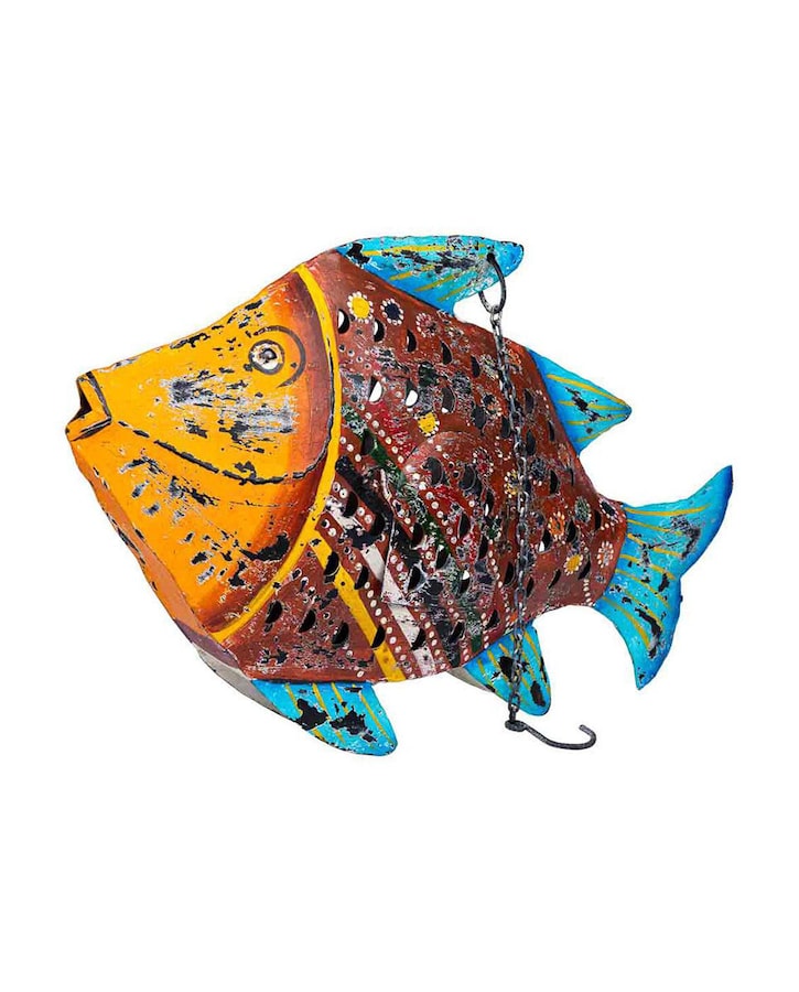 Pez portavela de metal envejecido azul