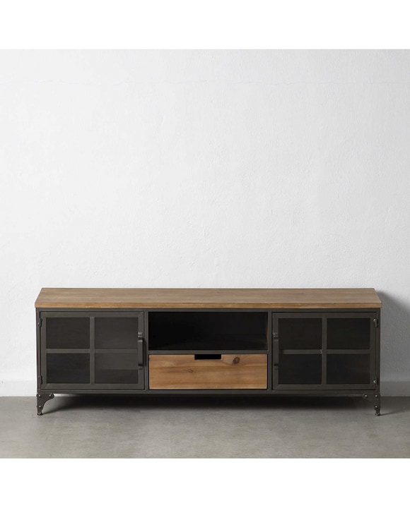 Recibidor de madera y ratan de 1 cajon y 2 puertas