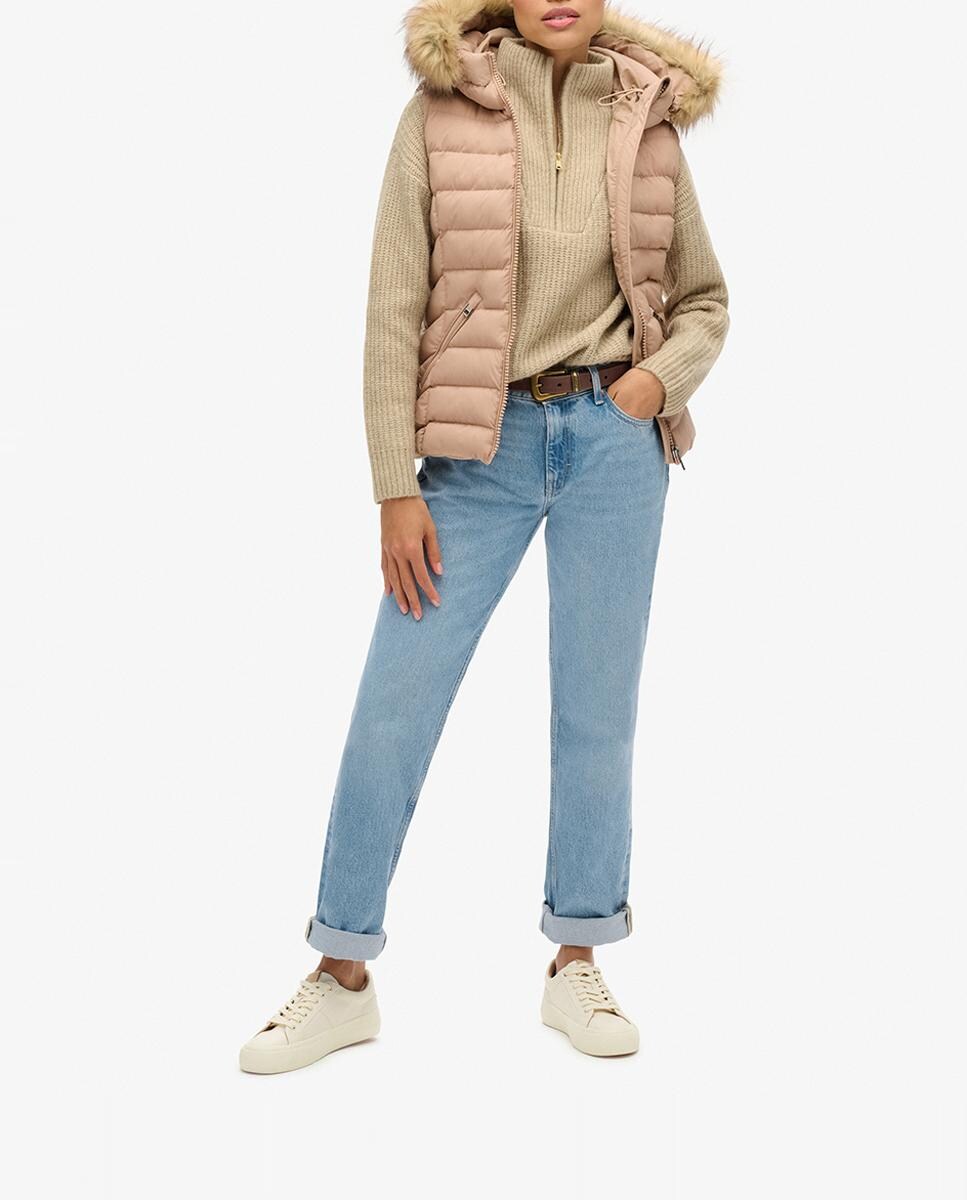 Chaleco de mujer con capucha y ribete de pelo sintético Fuji