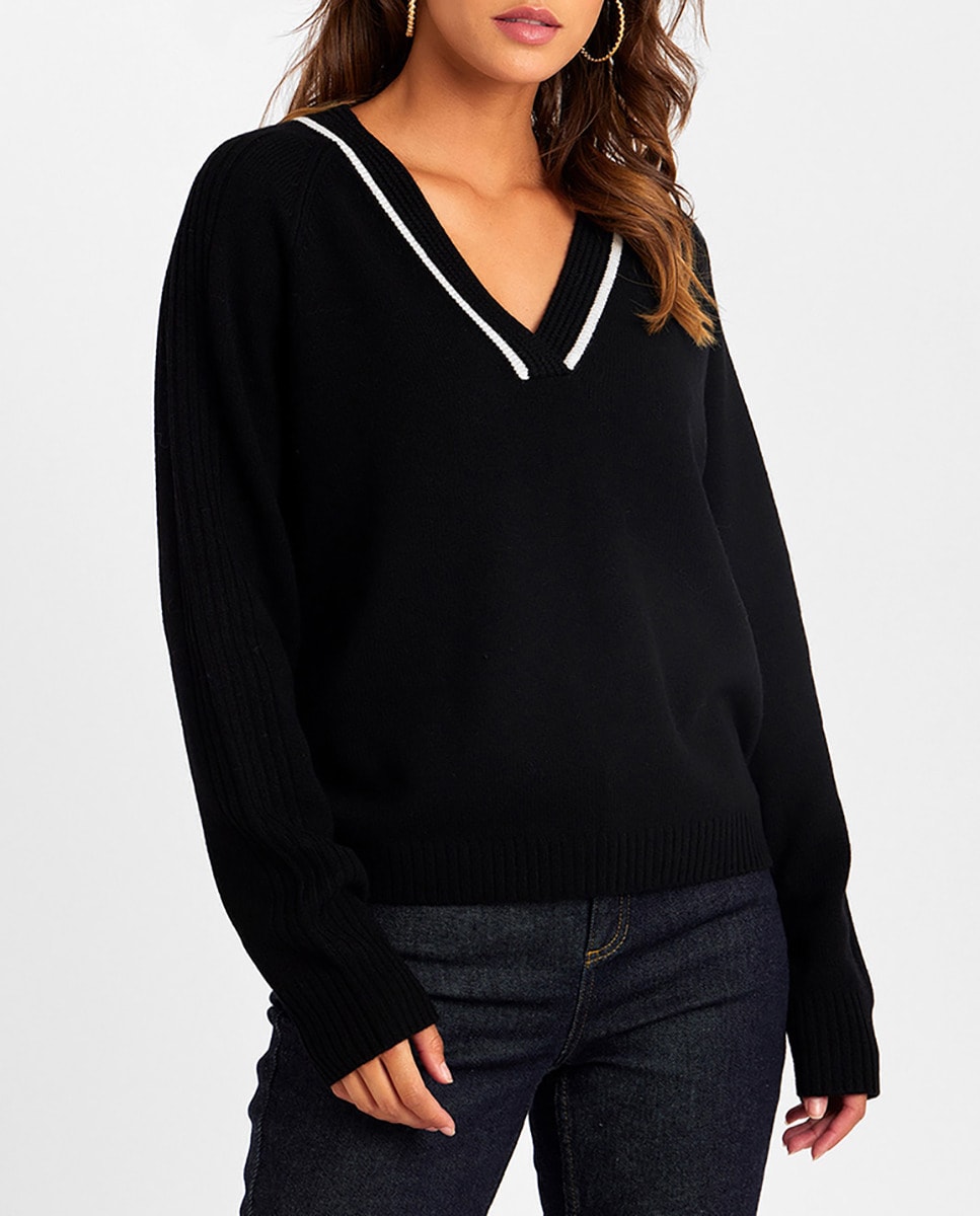 Jersey de mujer fluido con escote contrastado