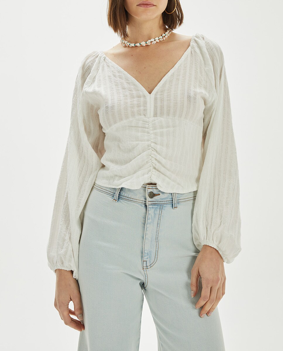 Camisa crop tejido raya lurex de mujer