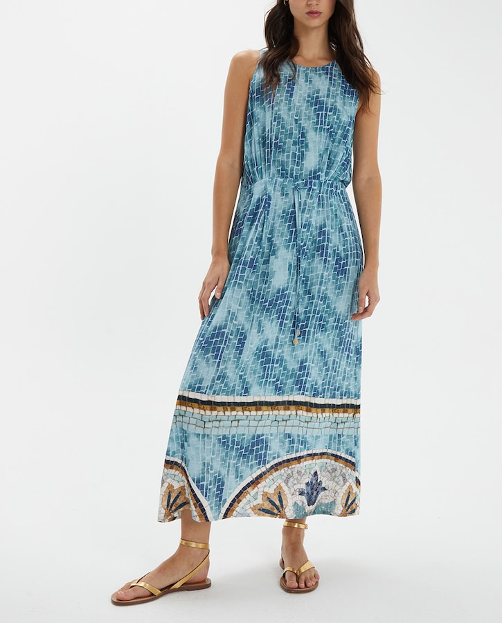 Vestido estampado sin mangas y de largo midi. Sin forro