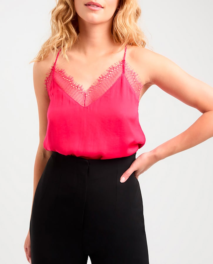 Top de mujer fluido y satinado con encaje