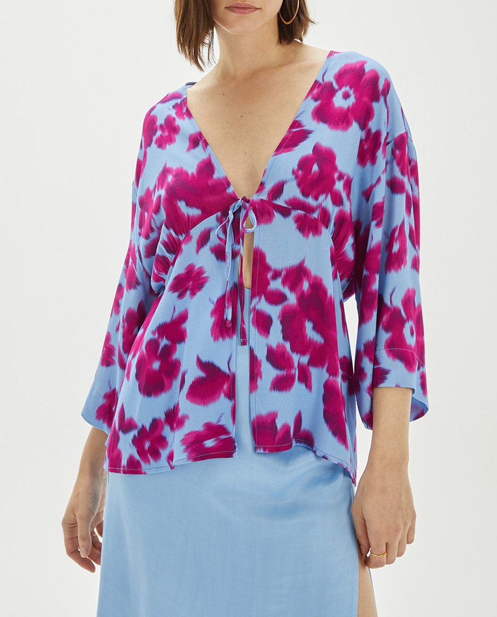 Kimono fluido estampado flores grandes de mujer