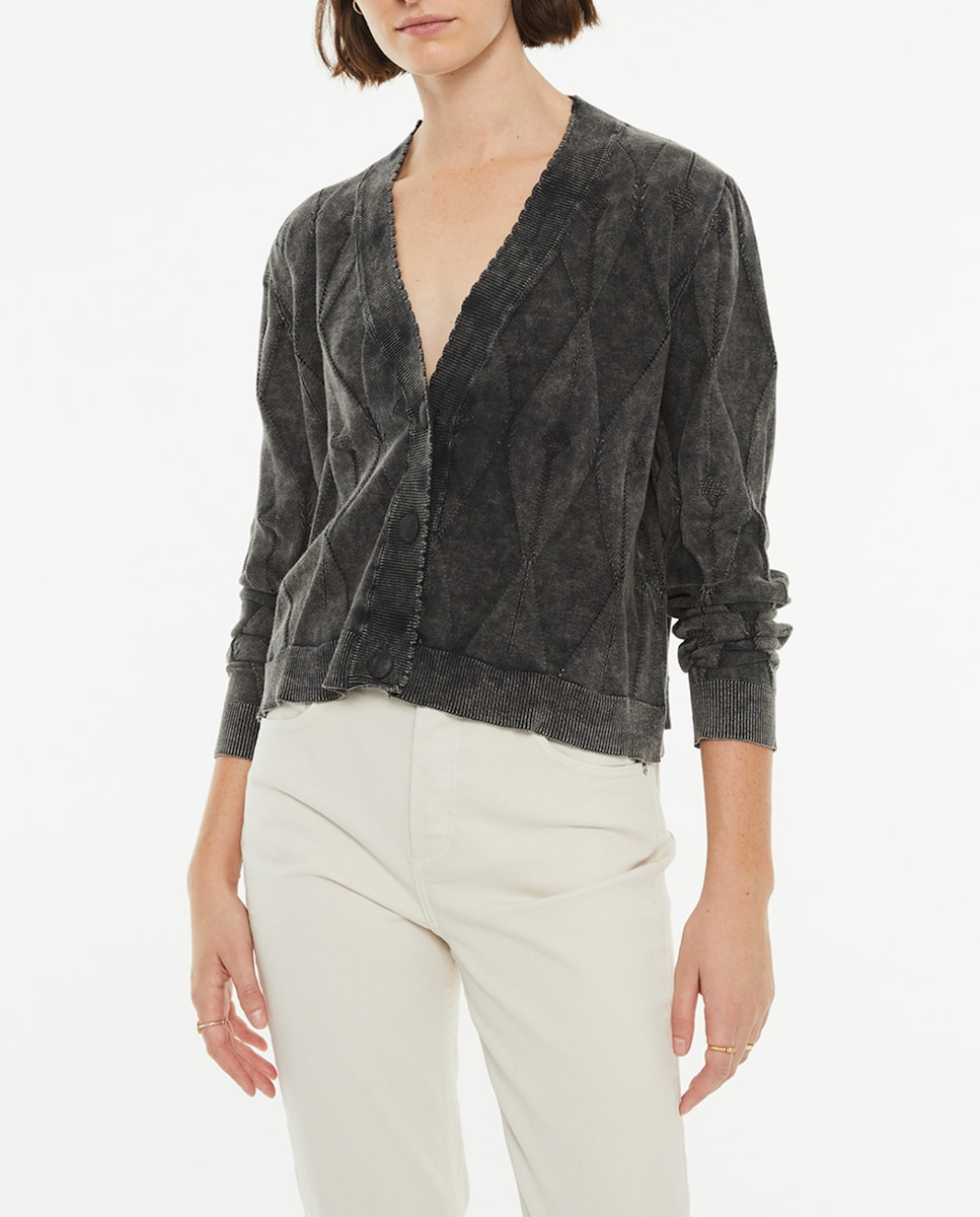 Cárdigan de mujer cuello pico tinte efecto desgastado