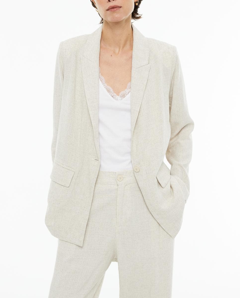 Americana de mujer recta fluida mezcla lino con bolsillos delanteros