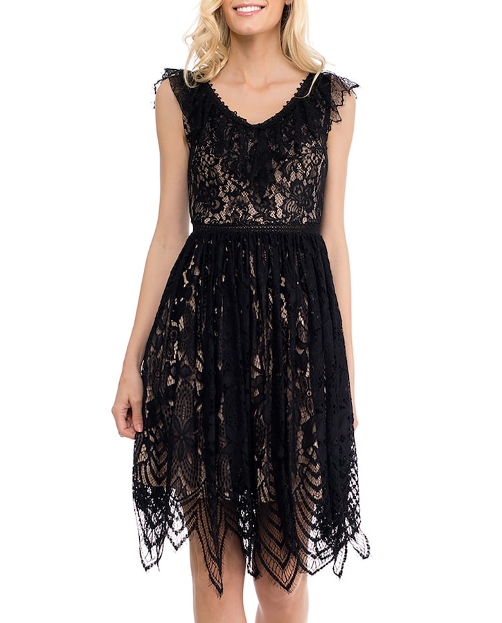 Vestido de encaje midi sin mangas con detalle de picos en el bajo y cremallera en la espalda