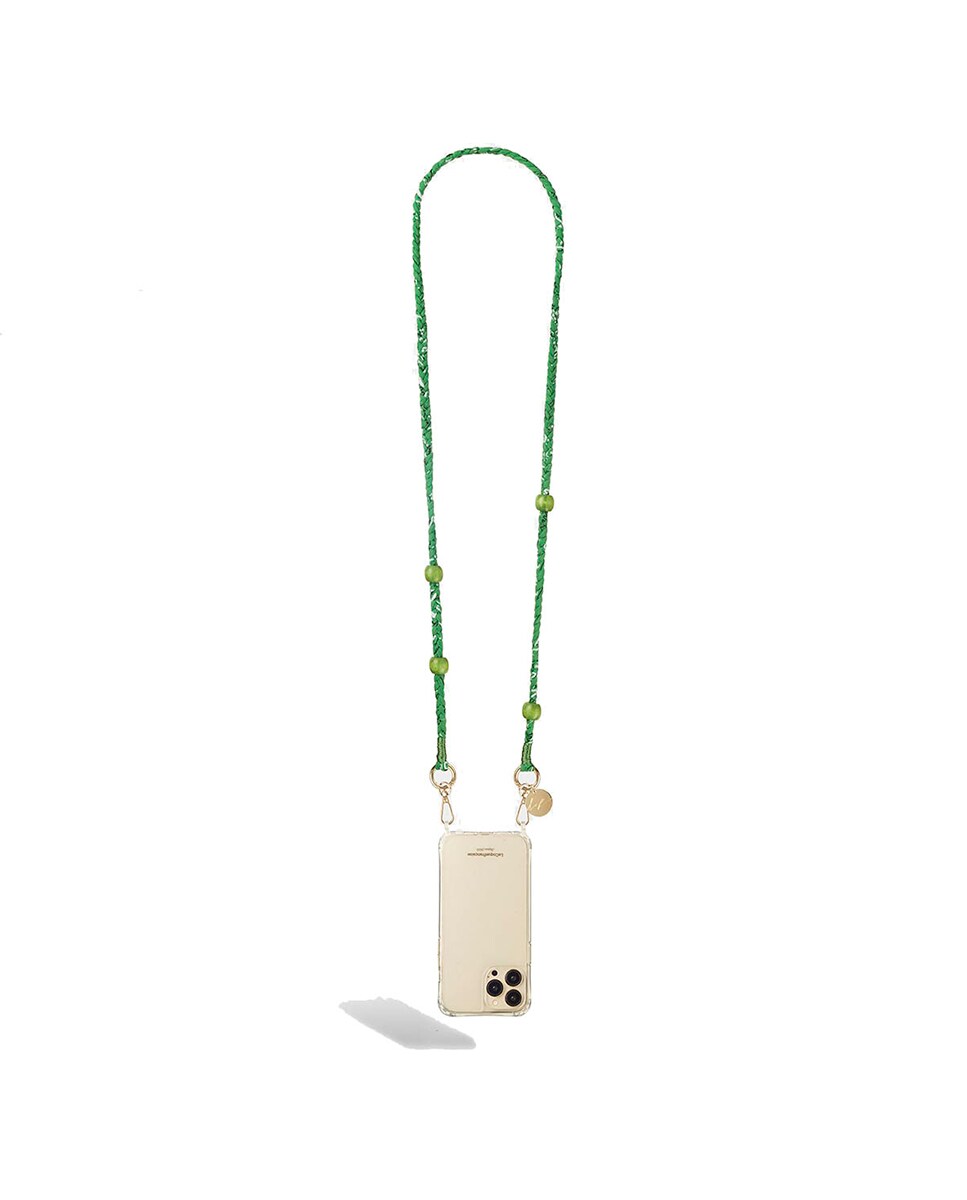 Cadena de bisutería verde Della La Coque Française Bandana con cuentas de madera verde y mosquetones dorados 120 cm