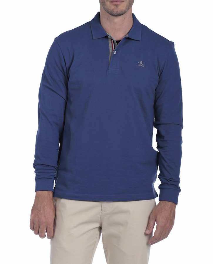 Polo Basico Hombre Manga Larga Logo Bordado