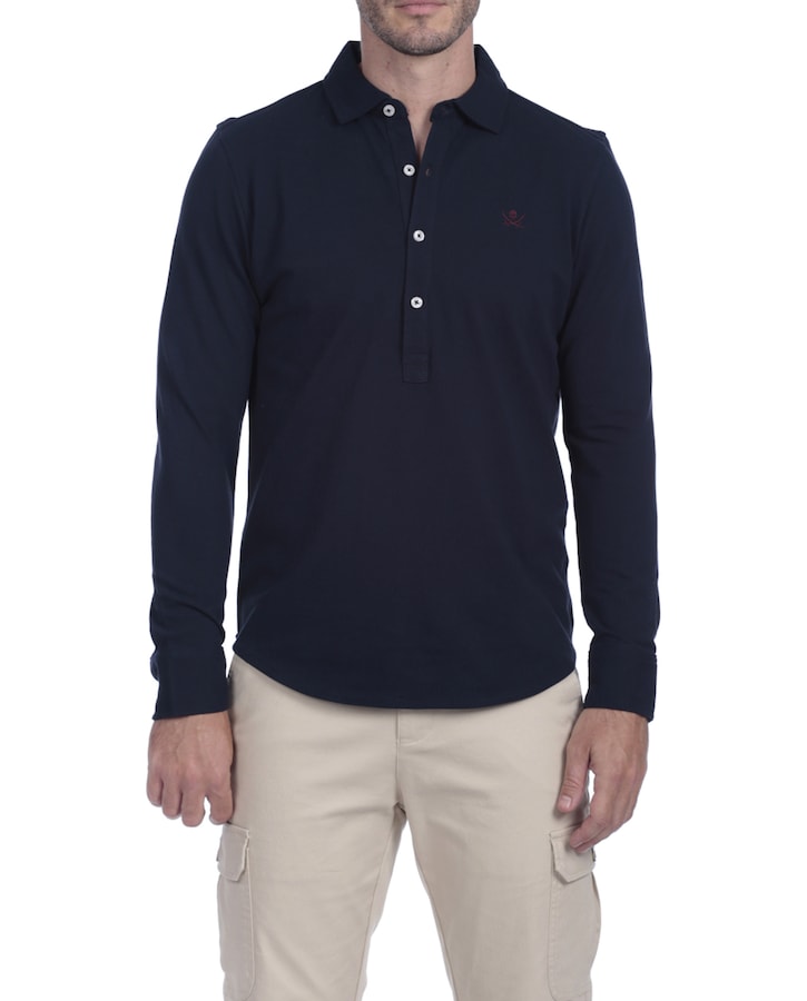 Polo Cuello tipo camisa Hombre Manga Larga Logo Bordado