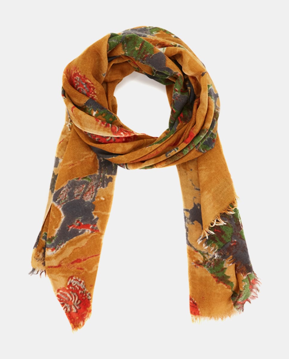 Bufanda de lana con print floral en amarillo