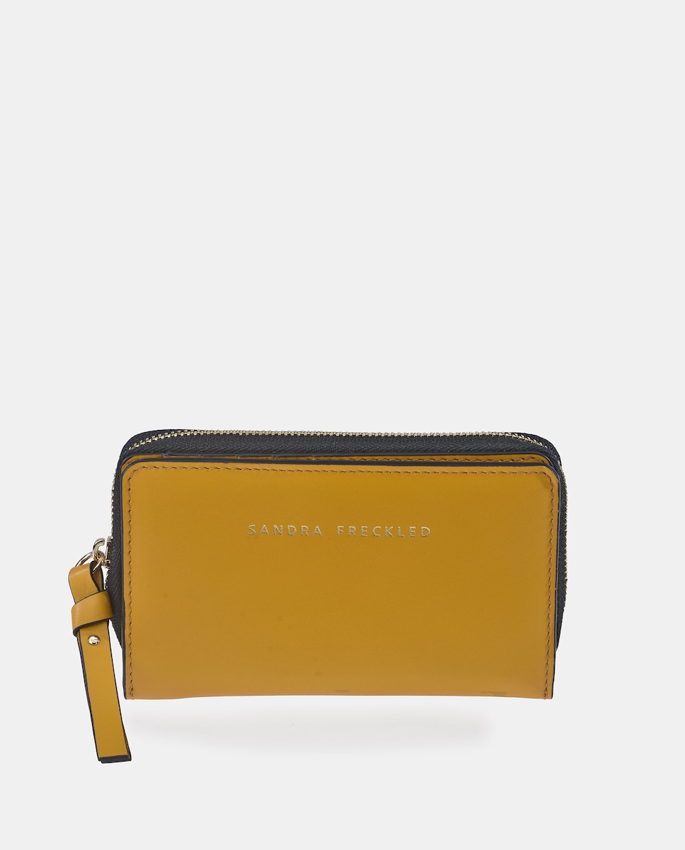 Monedero con cremallera en piel lisa