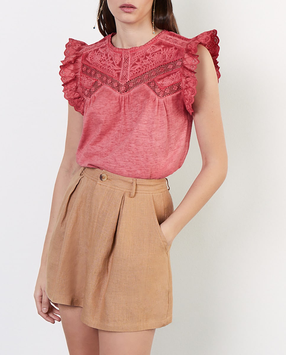 Camiseta de manga corta con volante