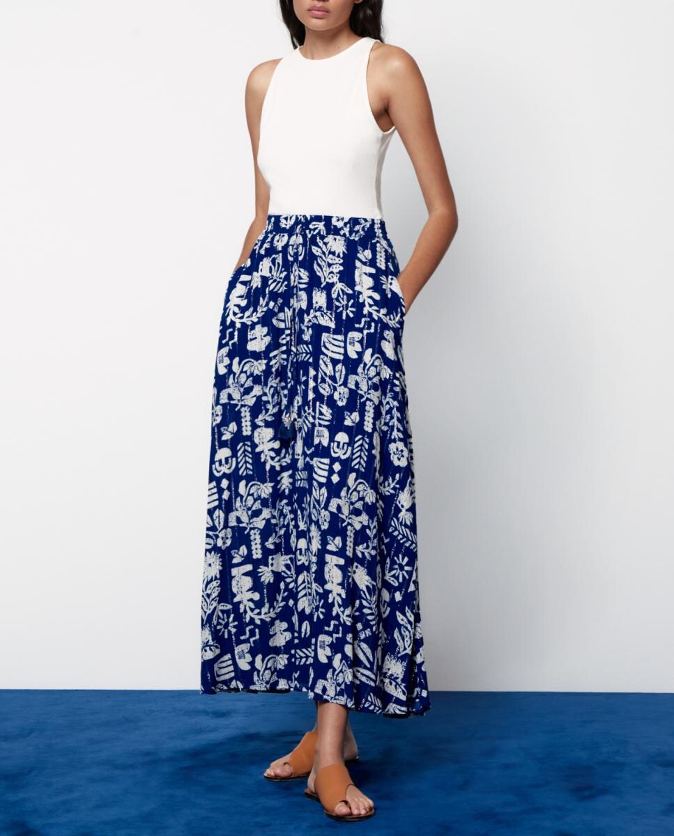 Falda larga estampada lurex