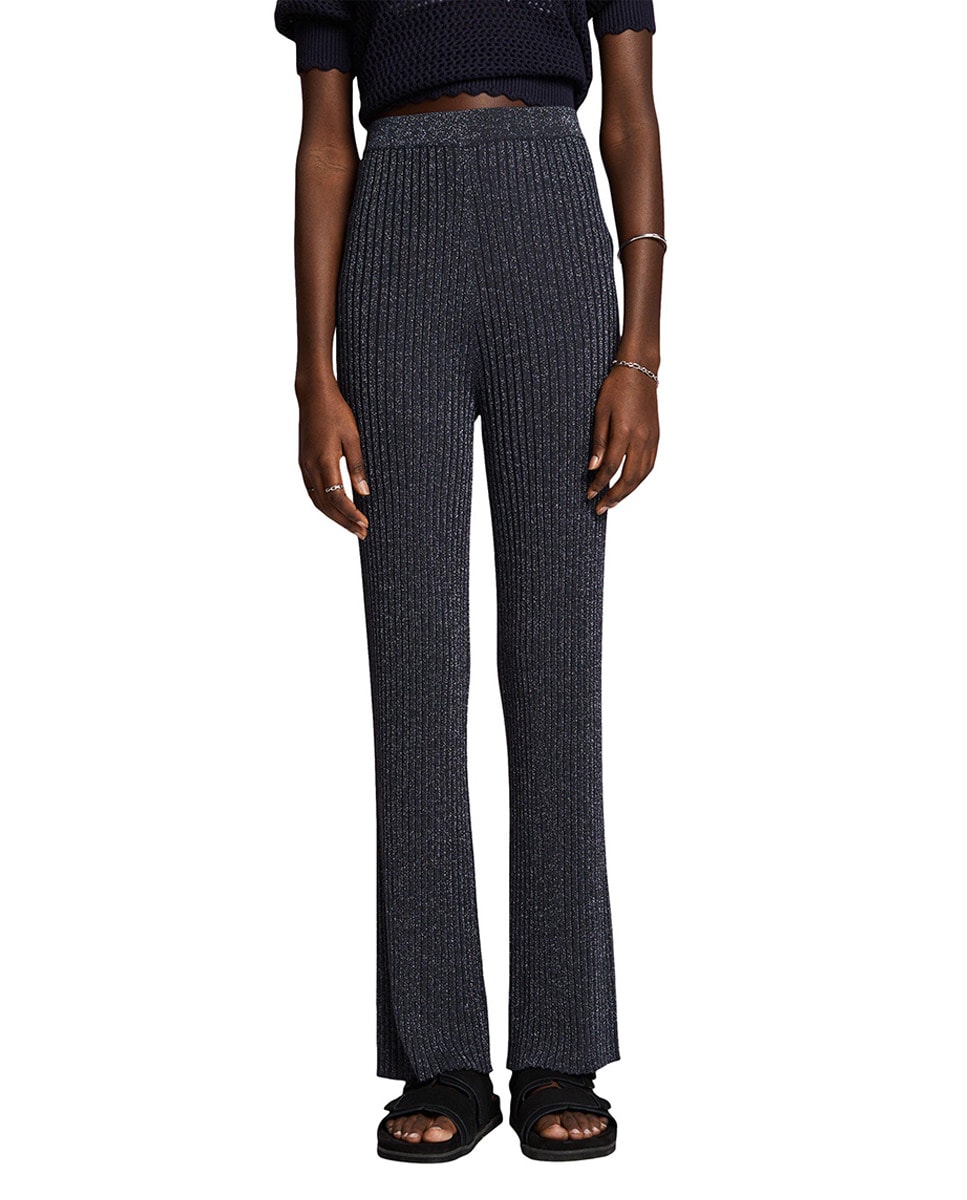 Pantalón de mujer flare de punto lurex