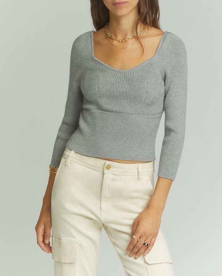 Top de punto con escote cuadrado mujer