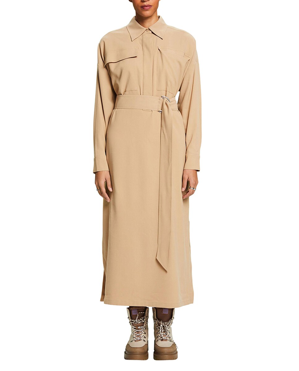 Vestido midi camisero viscosa con cinturón
