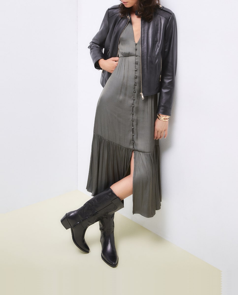 Cazadora de mujer biker piel trabilla en hombro